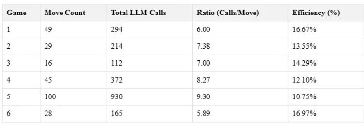 Decision-making efficiency was low, with only 10.75% to 16.97% of LLM calls resulting in valid moves. This inefficiency could be problematic in real-world scenarios requiring quick, accurate decisions.