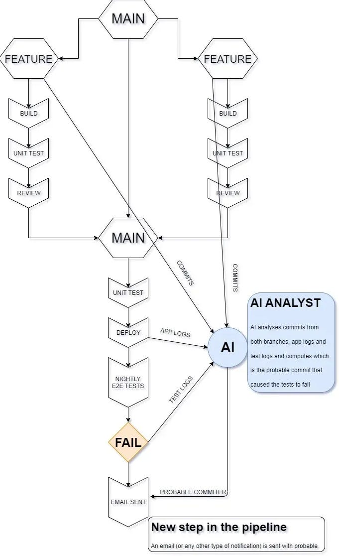Initially, when the AI hype started with the release of ChatGPT, we came up with an idea of “AI Analyst” directly connected to CICD pipelines: